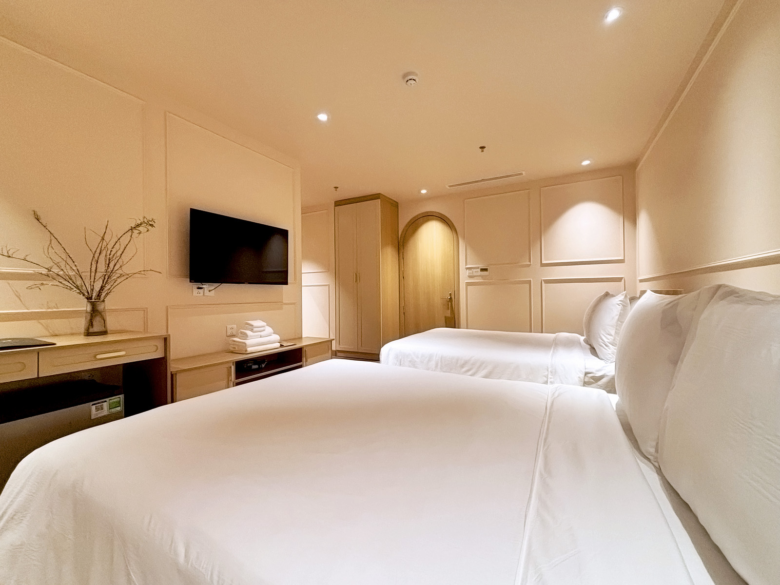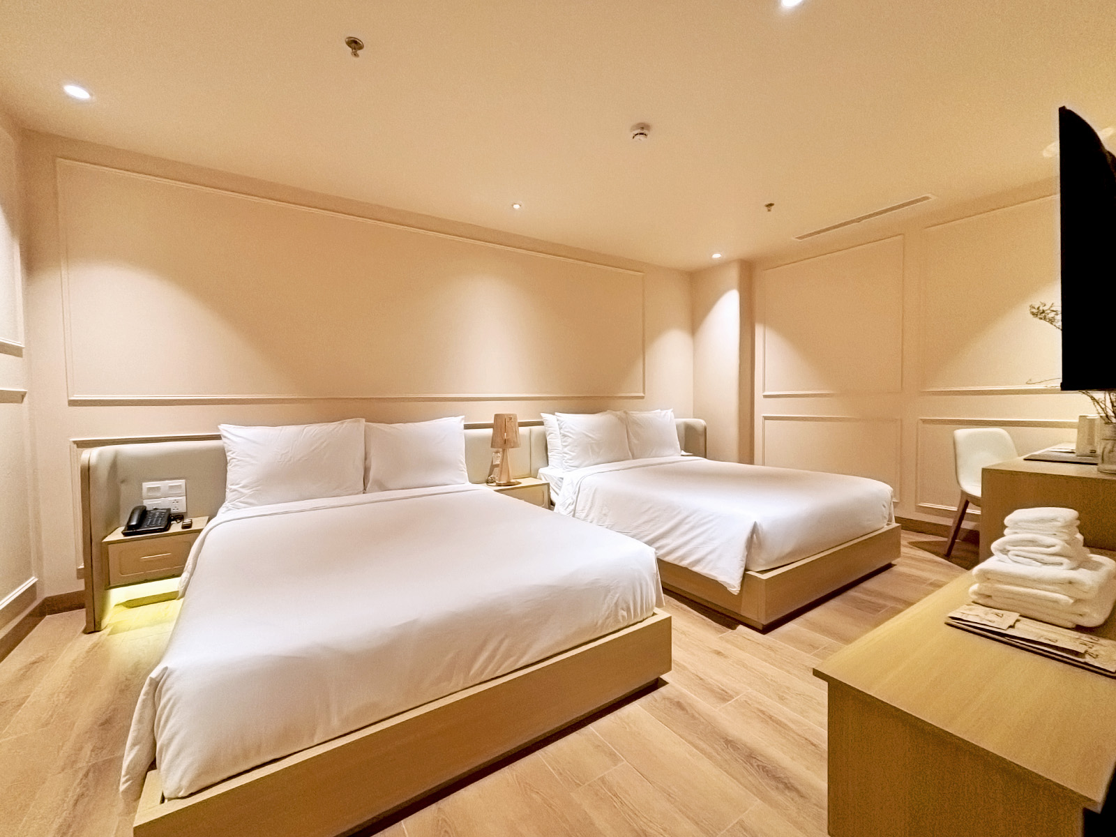 Phòng Deluxe Twin Room tại Peace Home Hotel với diện tích 26m² được thiết kế hiện đại và tinh tế, trang bị 2 giường đơn rộng rãi, phù hợp cho bạn bè, đồng nghiệp hoặc khách đi công tác. Không gian phòng thoáng đãng, nội thất ấm cúng, mang lại cảm giác thoải mái và thư giãn trong suốt thời gian lưu trú tại Phan Thiết.