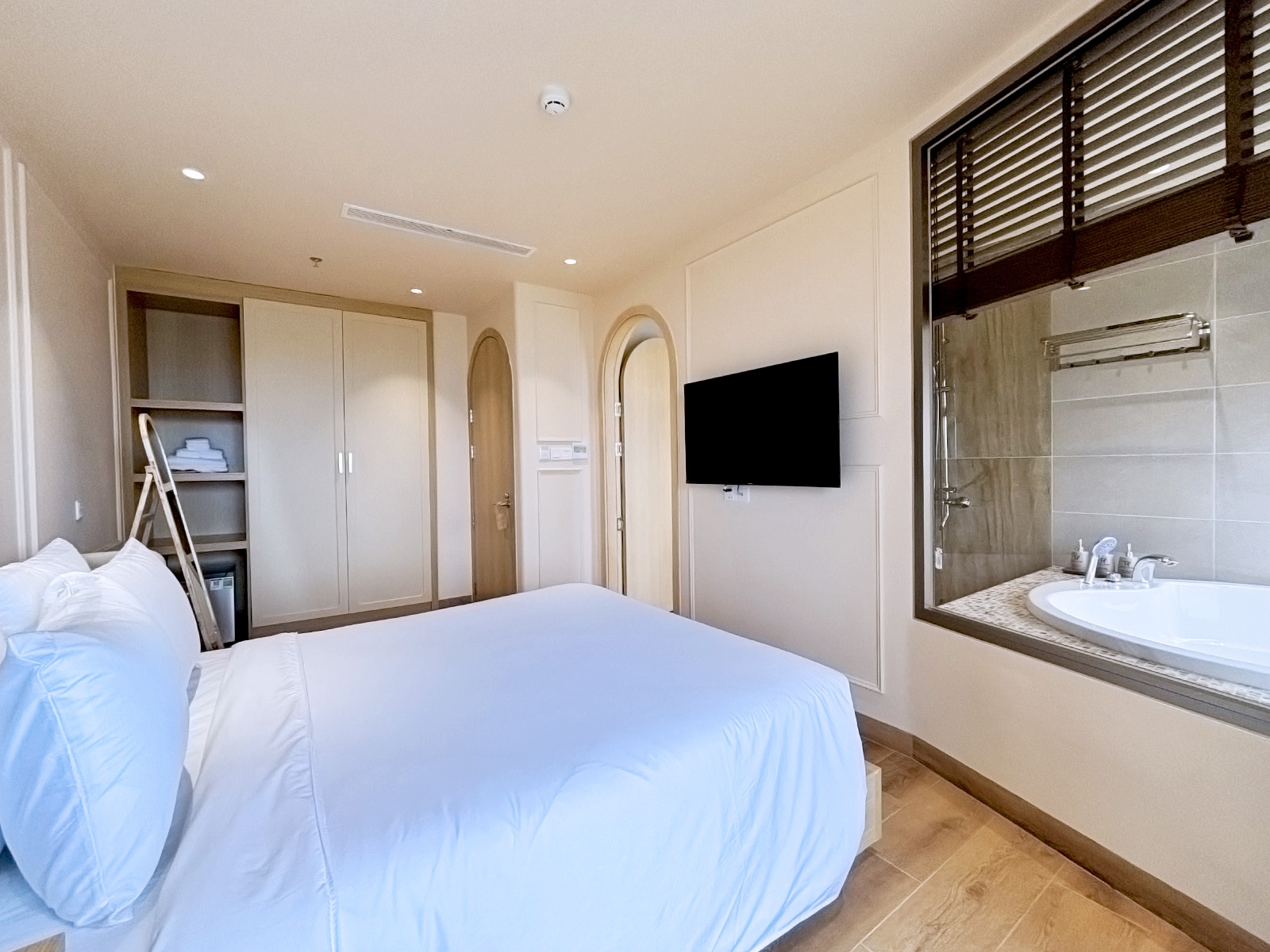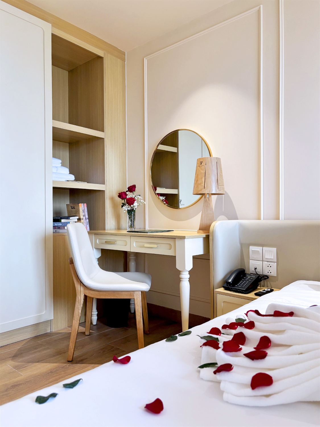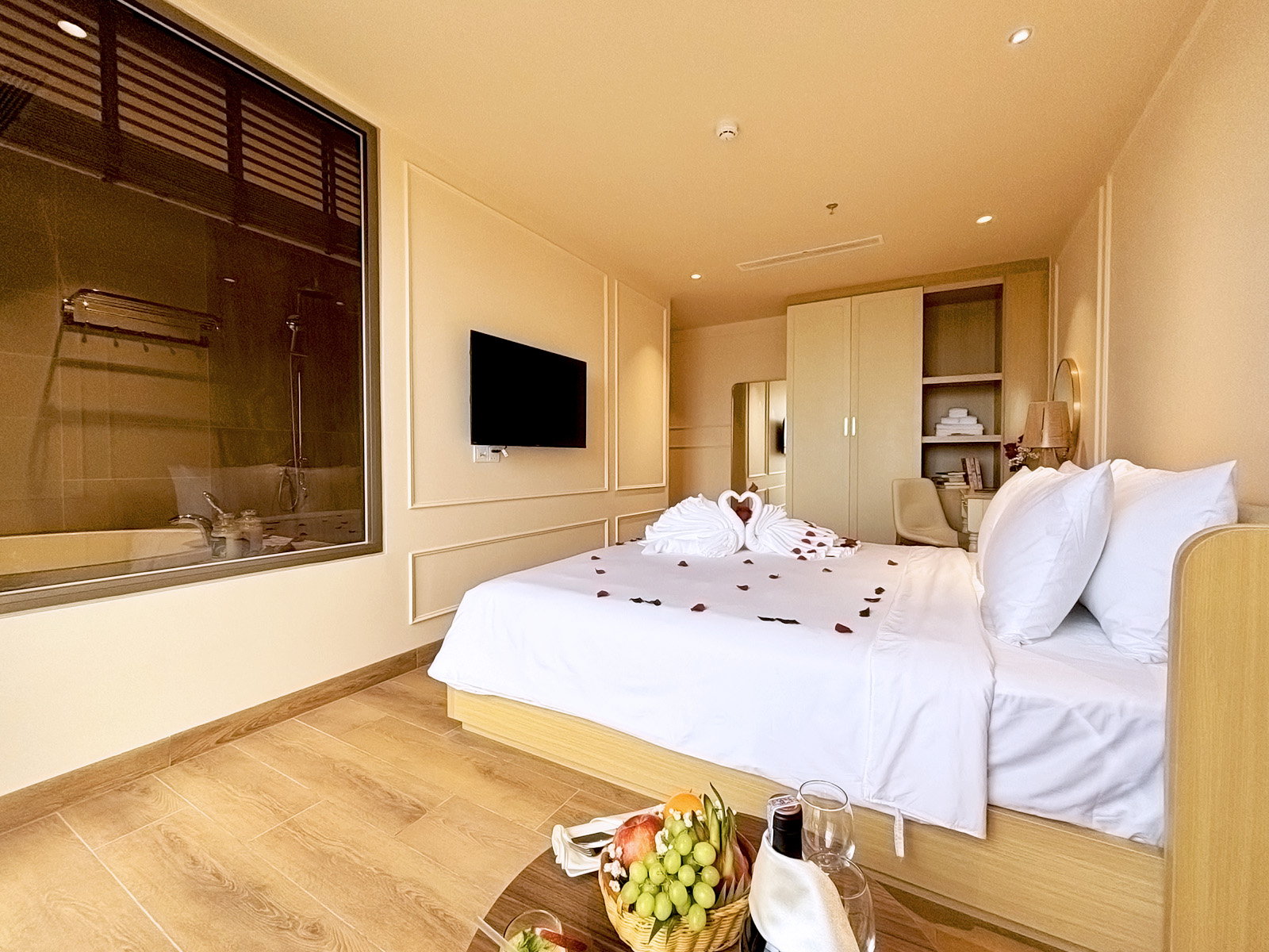 Phòng Premium Park View 26m² được thiết kế theo phong cách hiện đại, sang nhã, chú trọng sự hài hòa giữa màu sắc, ánh sáng và nội thất. Diện tích rộng giúp bố cục phòng trở nên thông thoáng, tạo cảm giác dễ chịu ngay từ khi bước vào.