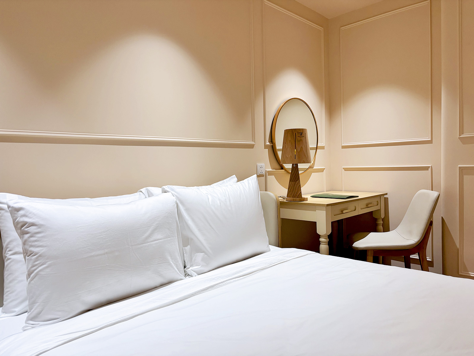 Phòng Superior Room mang phong cách hiện đại – tinh tế – thoáng đãng, sử dụng màu sắc nhẹ nhàng, tạo cảm giác thư giãn và sang trọng vừa đủ.