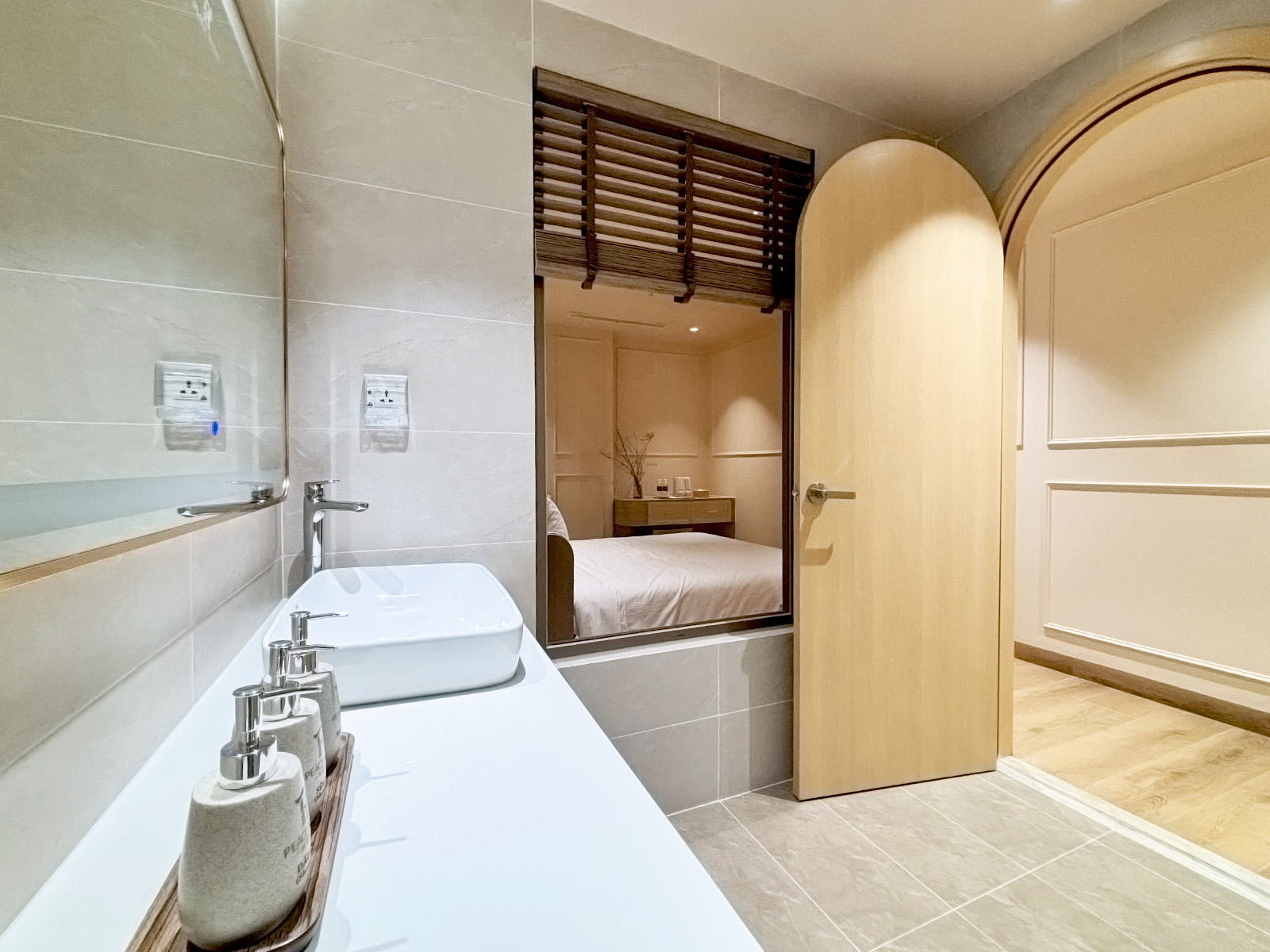 Phòng được bố trí hợp lý giữa khu vực nghỉ ngơi và sinh hoạt, tạo cảm giác thoải mái trong suốt thời gian lưu trú.