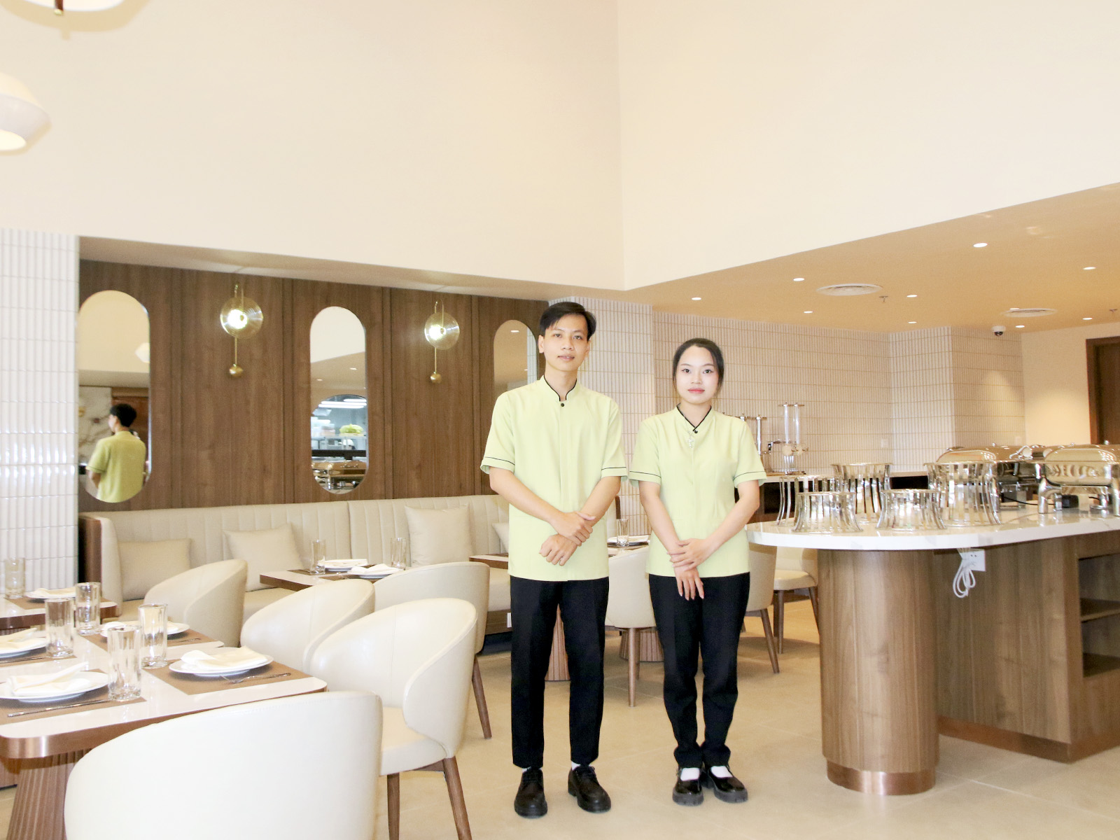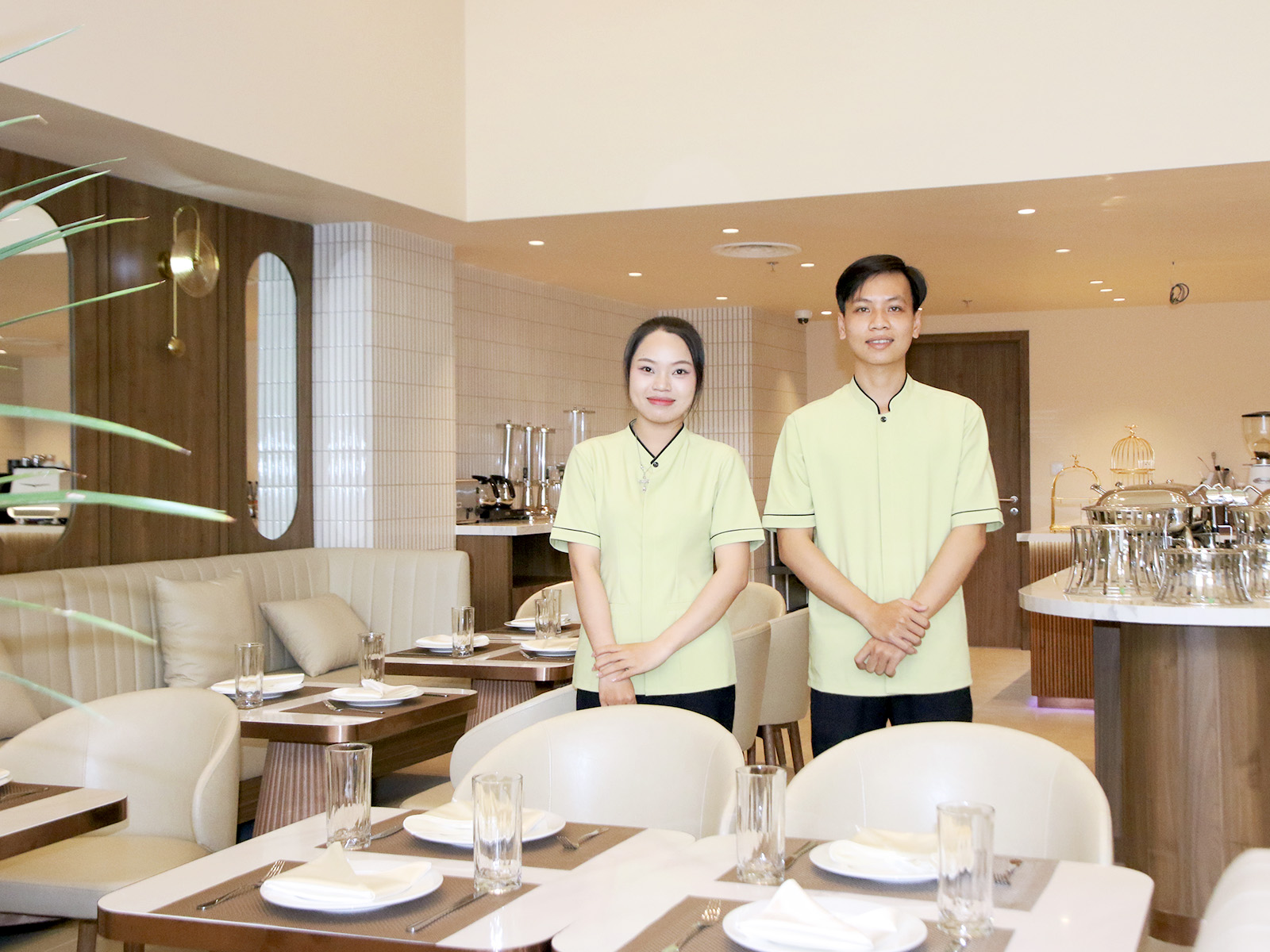 Nhà hàng phục vụ buffet sáng hằng ngày dành cho khách lưu trú với các món ăn được chọn lọc kỹ lưỡng, đảm bảo tươi ngon và phù hợp với nhiều khẩu vị.
